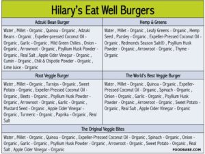 Hilary’s Root Burgers are phenomenal. These are excellent sources of protein. They have a wide selection of options that are both gluten free and soy isolate free. I have included the ingredients so you can see.